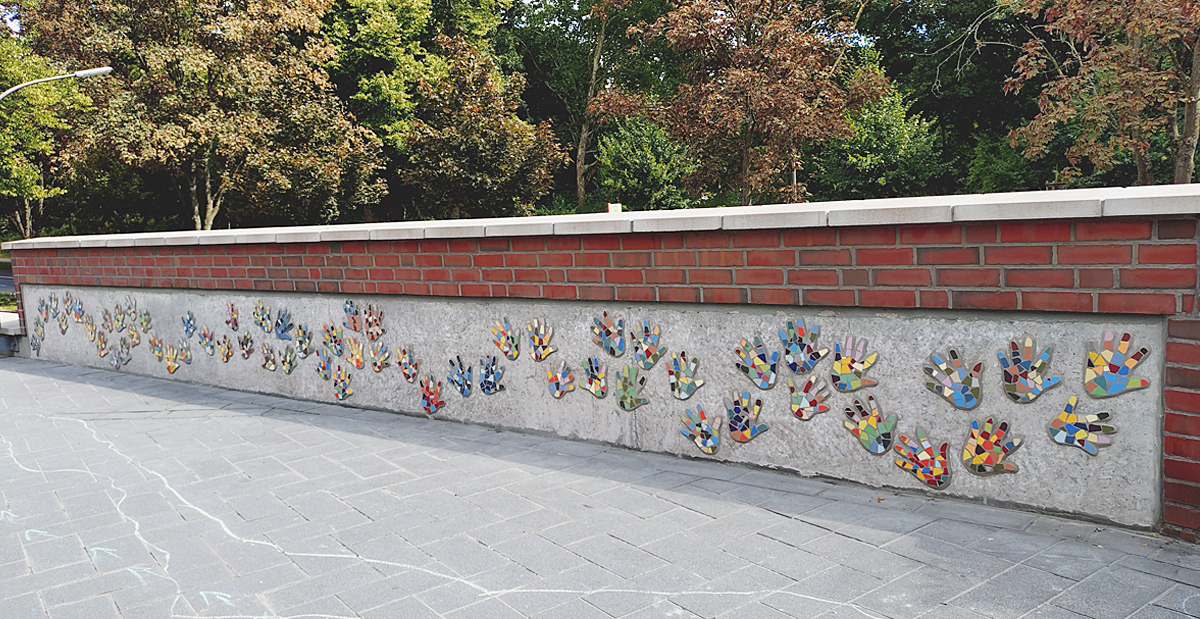 2025 - Die gestalteten Mosaikhände sind an der Mauer.