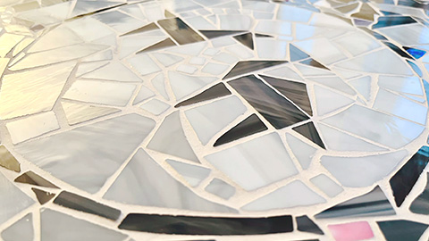 Die meisten Mosaike werden zum Schluss noch verfugt und gesäubert oder nachträglich behandelt, manchmal ist dafür ein gesonderter Termin erforderlich, denn jeder arbeitet anders und in seinem eigenen Tempo.
